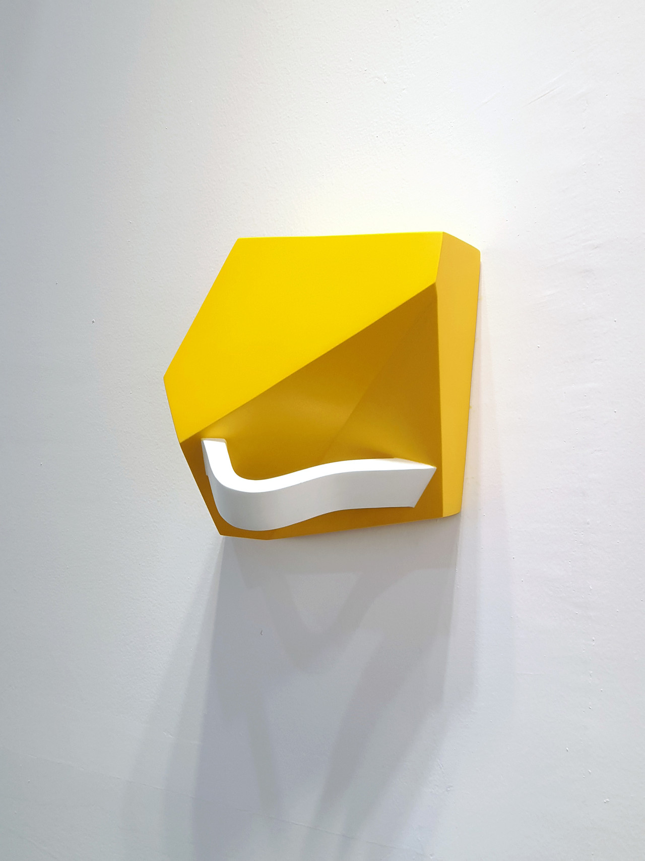 최근에는 상징성을 드러내는 요소들을 결합하여 작업에 반영함으로써 형식적인 측면에서 확장을 시도하고 있다. 작품에서 보여지는 건축의 아치 형태나 구멍이 뚫려 있는 드로잉북을 연상시키는 형태들이 그러한 것들이다. 두 개의 영역의 ‘경계’인 ‘문’이라는 건축적 요소는 작품 속 그 너머에 존재하는 또 다른 세계를 연상시키는 장치로써 현실과 가상의 경계를 익숙한 형태 속 낯선 세계의 환영을 통해 보여준다. 또한 내게 드로잉북은 작업을 하면서 가장 가까이 두고, 그 안에 무언가를 그려보기도 하고, 그것 자체를 접기도 잘라내기도 하며 실험하는 무한한 가능성의 대상이다. 그리고 그것은 캔버스와 같이 평면성을 상징하는 대상이기도 하다. 작품을 통해 드러나는 드로잉북이라는 일상적 오브제는 접히고 잘리며 그 내부에 외부세계를 담아낸다. 그리고 그 자신의 틀 안에서 또 다른 공간을 발생시키며 그 자신이 다양한 가능성을 가진 주체로 거듭난다. 이것은 그 평면적 상징성을 그대로 드러내면서도 역설적으로 존재하는 것이며 관람자의 관점에 따라 변화하는 외부세계를 담아냄으로써 ‘반영’을 통한 공존을 보여준다. 이렇듯 입체감을 가지는 평면작품과 볼륨감이 제거된 입체작품들은 공간 속 하나의 레이어로 존재하며 자신의 고유성을 유지하면서 또 다른 세계를 수용한다.